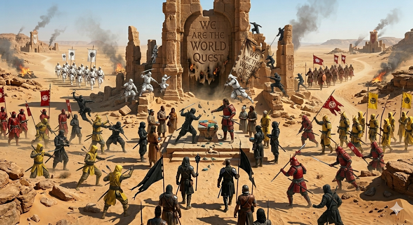 Durante gerações, essa harmonia sustentou o deserto. No entanto, como tantas grandes histórias, a ruína começou de dentro. Divergências políticas cresceram silenciosamente, transformando alianças em desconfiança e, pouco a pouco, o que antes era união tornou-se divisão. Foi nesse momento de fragilidade que surgiram os tiranos. Quatro líderes, cada um movido por sua própria visão de poder, manipularam essas divisões e tomaram para si parcelas do povo. Assim, Tuttori deixou de ser um só. O que antes era unidade foi fragmentado em quatro clãs, cada qual marcado por uma cor e por um novo propósito: White, Black, Yellow e Red. Sob o domínio de seus tiranos, esses clãs passaram a disputar entre si o controle do deserto e de seus escassos recursos, transformando sua antiga terra natal em um campo de guerra constante. Ainda assim, nem tudo foi perdido. Em meio ao conflito, permanecem aqueles que não sucumbiram completamente — guerreiros que carregam consigo a memória do que Tuttori já foi. São poucos, frágeis diante da brutalidade que os cerca, mas representam algo maior: a possibilidade de reconstrução. É nesse cenário que surge a missão dos jogadores. Mais do que derrotar os tiranos, é necessário restaurar aquilo que foi quebrado. Cada batalha exige não apenas força, mas responsabilidade. Pois a vitória verdadeira não está apenas na queda dos opressores, mas na preservação dos últimos vestígios de unidade entre os clãs. Derrotar os quatro tiranos é essencial. No entanto, garantir que ao menos um guerreiro de cada clã sobreviva é o que define o sucesso da missão. Sem eles, não há futuro para Tuttori — apenas a repetição de sua queda. Assim, o destino desse povo esquecido repousa nas mãos daqueles que ousarem enfrentar não apenas inimigos, mas a própria consequência da divisão. Mais detalhes sobre a quest AQUI |